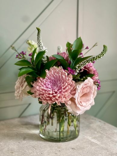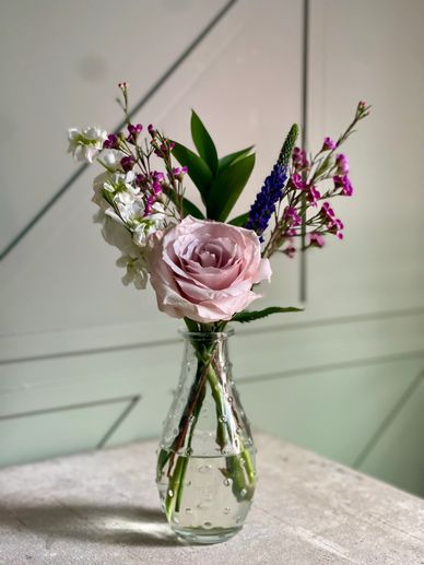 A petite but beautiful arrangement designed in a small vase, perfect for guest tables or cocktail areas.